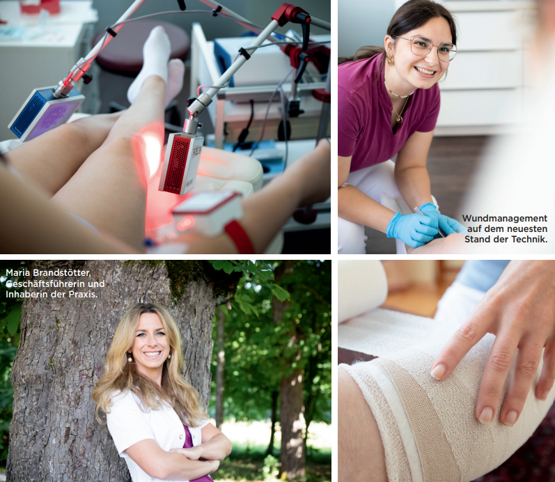 Ein wesentliches Anliegen bleibt die zukünftige Rückerstattung selbstständiger Pflegeleistungen. Seit der Eröffnung setzt sich Maria Brandstötter politisch für die Anerkennung notwendiger Wundversorgung ein, um langfristig einen fairen Zugang zu schaffen und einer Zwei-Klassen-Medizin entgegenzuwirken. Ziel ist es Amputationen zu verhindern, denn jede einzelne Gliedmaße erfüllt eine Aufgabe. Mit moderner Technik, fundierten Fachausbildungen im Wundmanagement und langjähriger Erfahrung steht das Team an sechs Tagen pro Woche ganzjährig zur Verfügung. Neue Angebote wie die LAight-Therapie zur Prävention von operativen Eingriffen bei Akne Inversa und Hidradenitis suppurativa (rezidivierende Abszesse in Leiste, Achsel oder im Gesicht) sowie die Haemolaser- und Vitamin-C-Infusionstherapie ergänzen das Spektrum vor allem bei chronischem FatigueSyndrom (CFS) und verminderter Mikrozirkulation. Im Mittelpunkt steht dabei immer ein Ziel: die raschest mögliche Heilung und eine Versorgung, die Menschen stärkt.